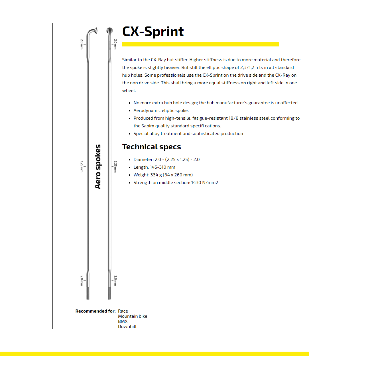 SAPIM CX-Ray CX-Sprint RACE Leader Broken Wind Flat Spokes Self Lock Aluminum Cap