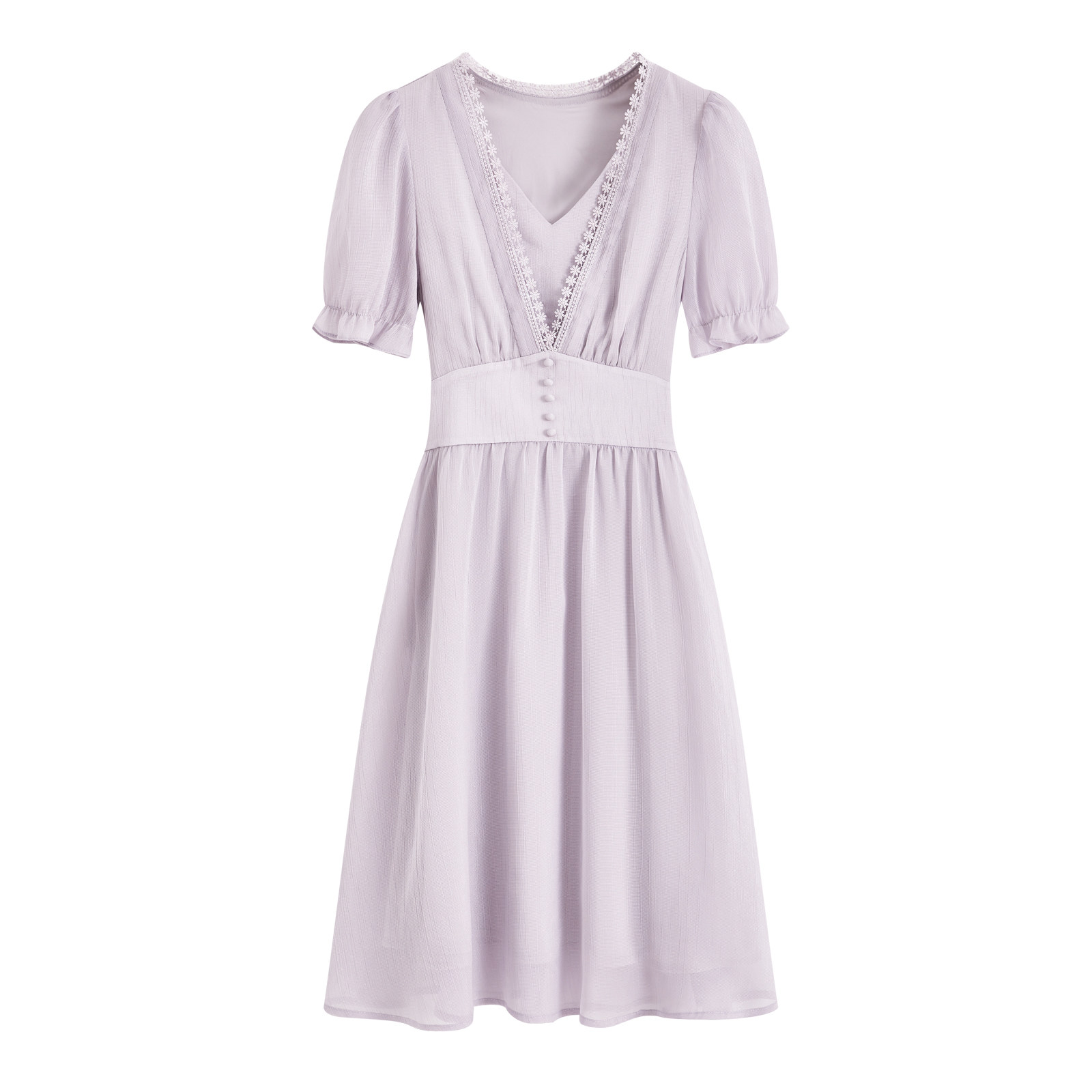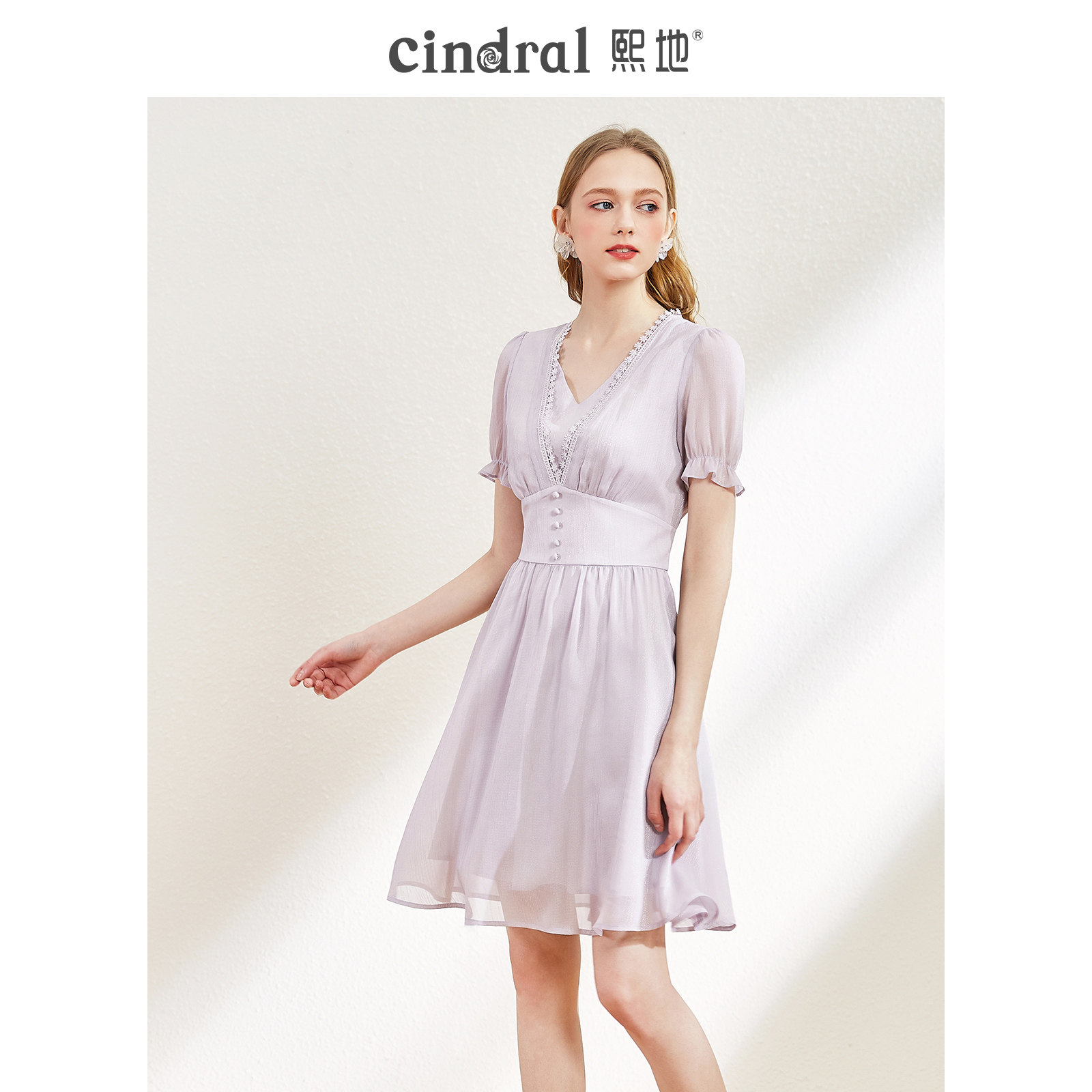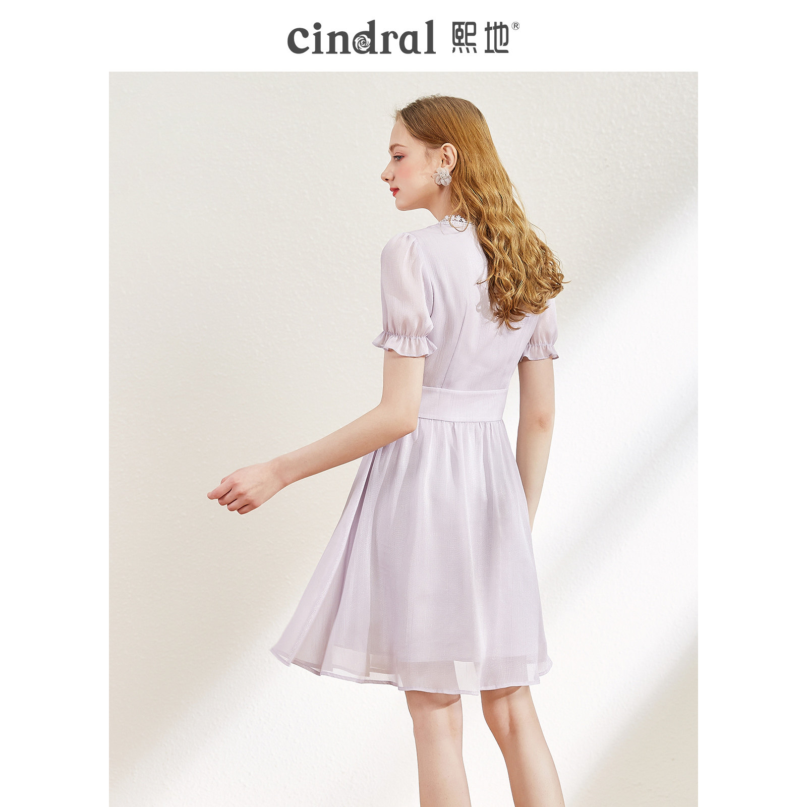 Xi Lands 2022 Summer new dress Children purple V collar light color with sweet and beautiful temperament minor