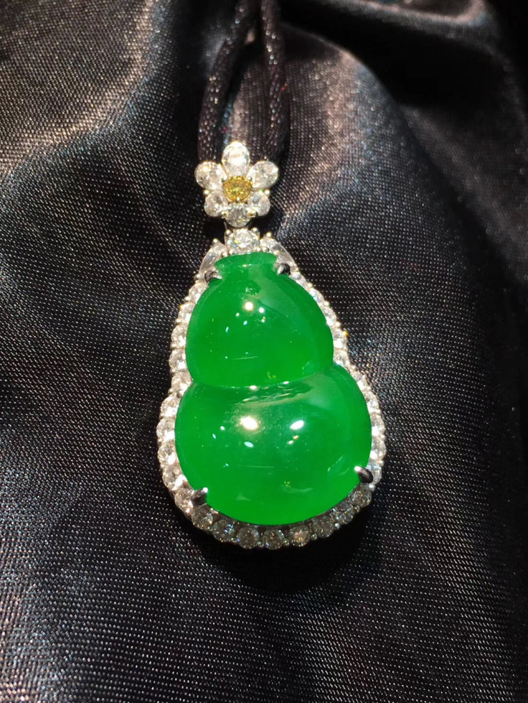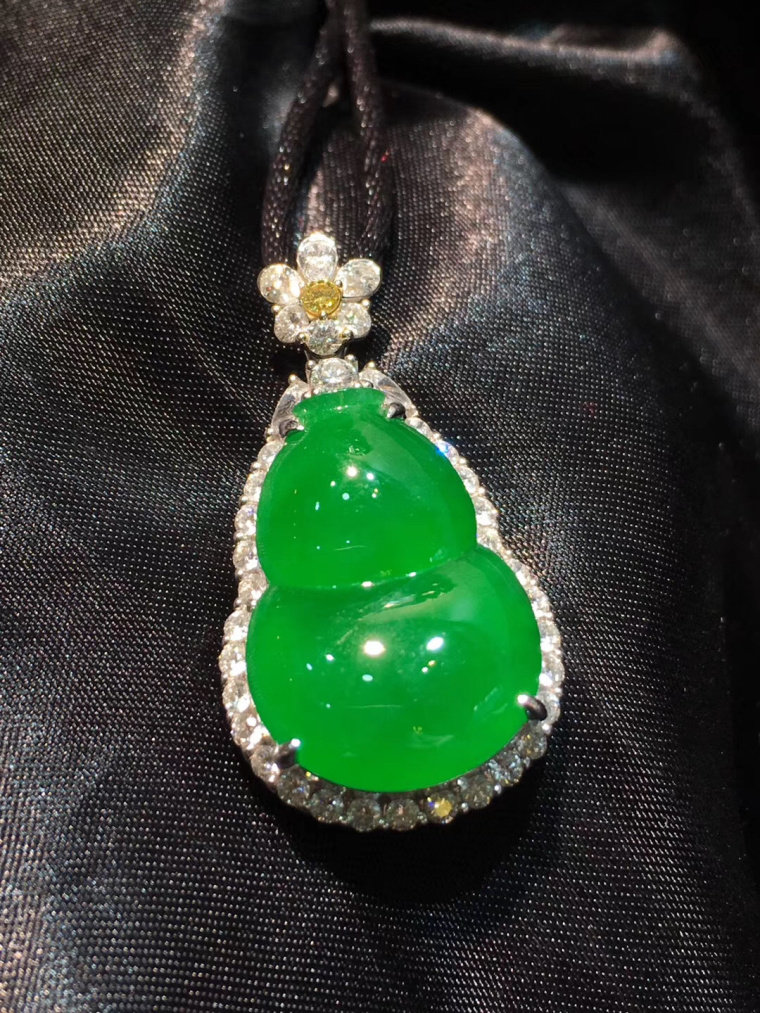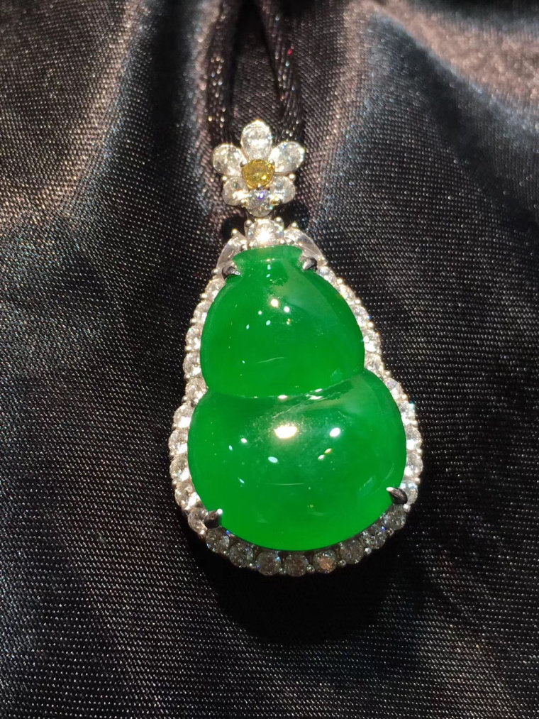 Natural a-cargo Jade Jade Buddha Goddess of Mercy Gourd Green Bean Tree Leaves Landscape Brand Jade Pendant Sun Green