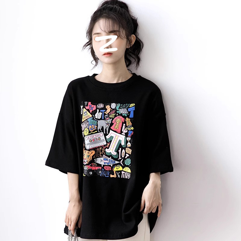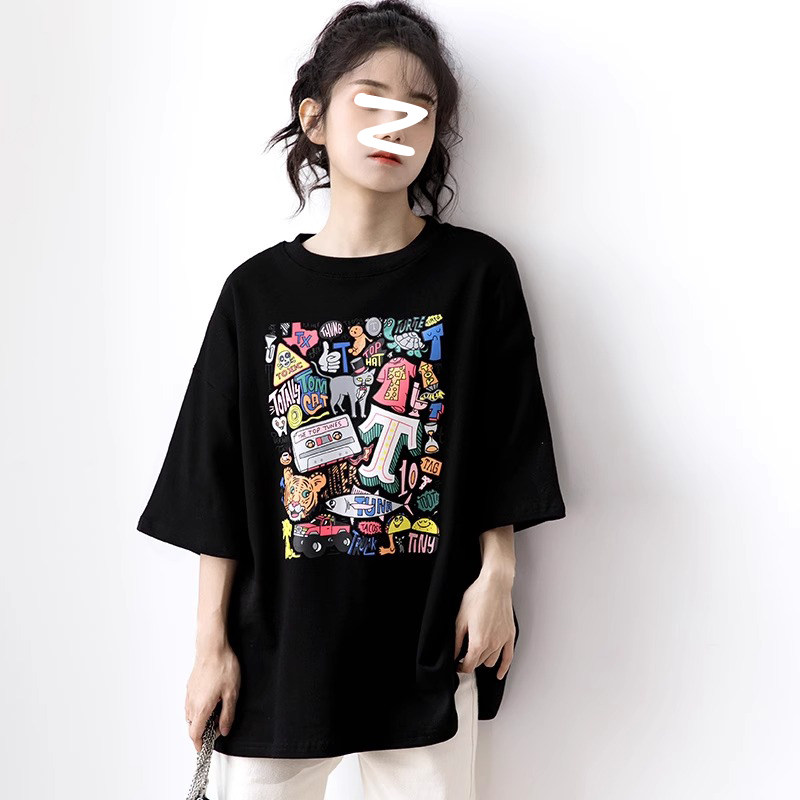 European Station Tide Mills black t-shirt woman 2023 New summer loose middle sleeves Long of pure cotton lins blouses-Taobao