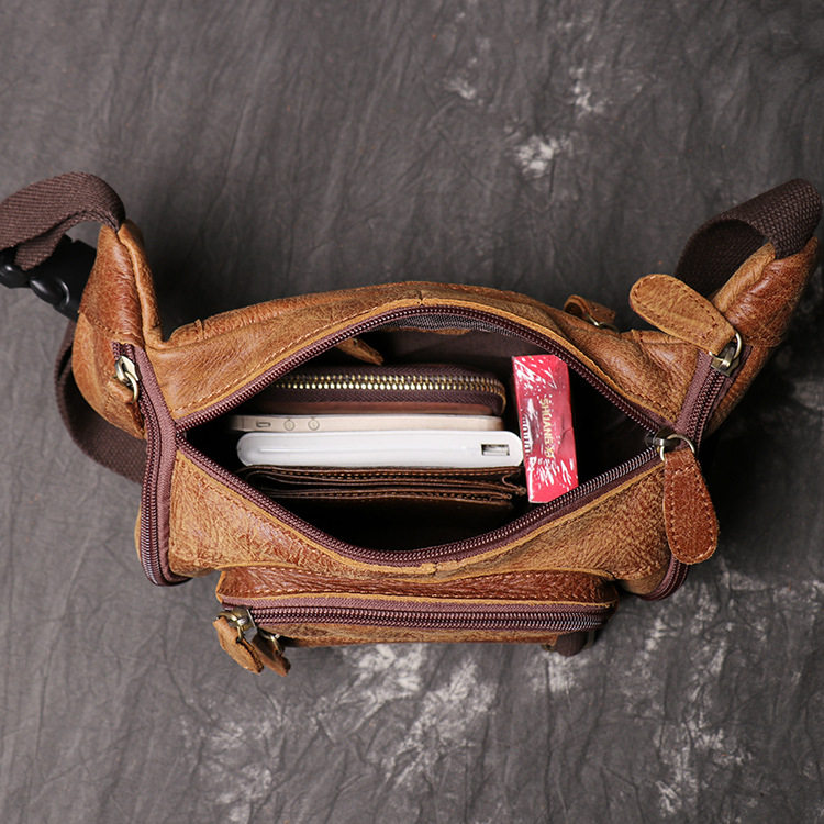 New chest bag men's matte leather crossbody men's bag genuine leather trendy youth bag cowhide waist bag large capacity trendy bag shoulder