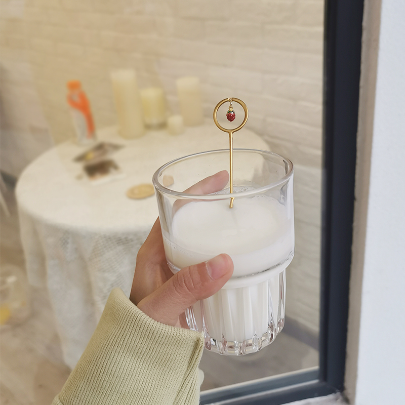 Little Fairy) Heavy feel ins wind tempered glass coffee cup ice American latte drink cup can be stacked