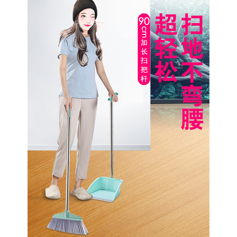 Sweep of the suit Home Dustpan Plastic Stainless Steel Rod Soft Hair Sweeping Nonstick Hair Broom Dustpan Cleaning Tools