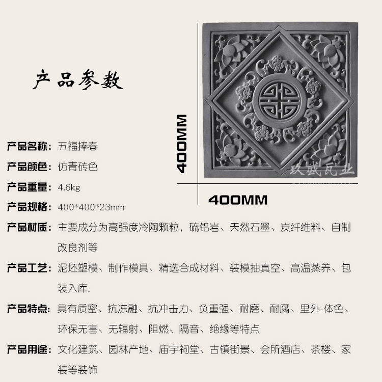 Brick carving relief Wufu holding spring Floor tile Antique brick Shadow wall Garden ancient building green brick Chinese decorative wall brick