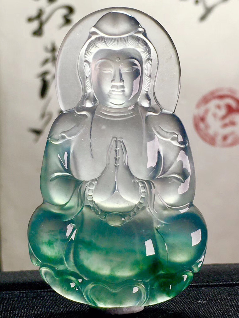 Natural Burmese A-type ice jadeite plain pieces Jade Buddha Avalokitesvara jade pendant pendant safe buckle jadeite raw stone