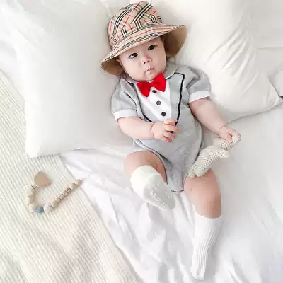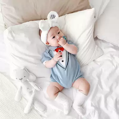 Luca mom knitted bag fart clothes Bow short-sleeved polo shirt triangle climbing clothes for infants and young children 3-18 months men and women