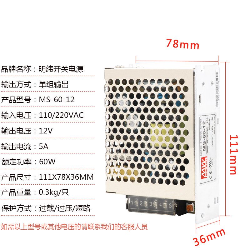 Work-control level switching power supply MS-60-12V5A24VDC5V12ALED DC motor transformer monitoring access control