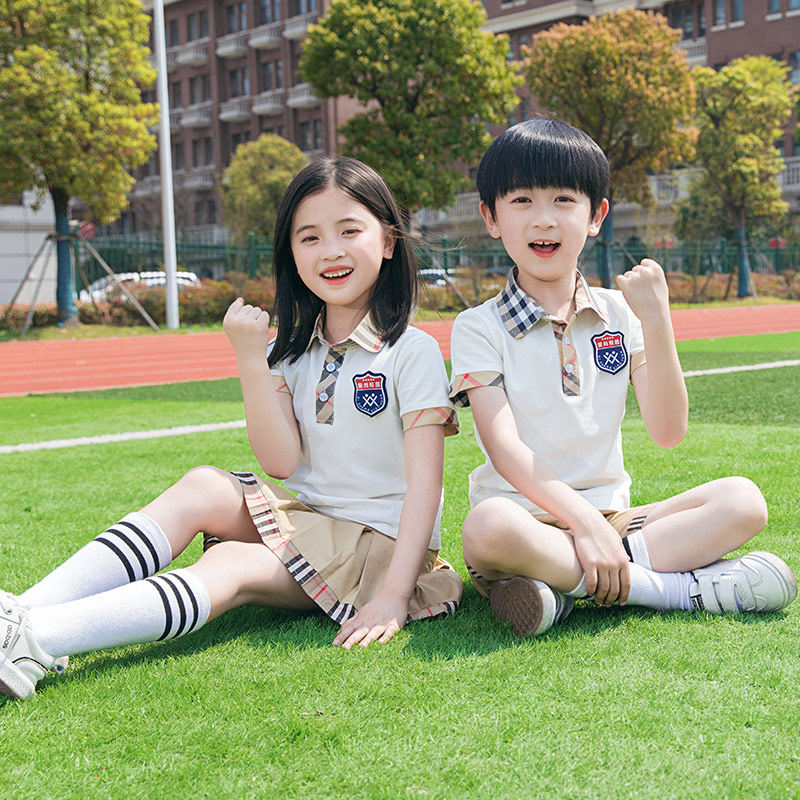 Primary school uniforms Summer clothes Yinglun Wind Kindergarten Garden clothes Summer short sleeves College Wind Men and women Boys Class Clothes Teacher Clothing