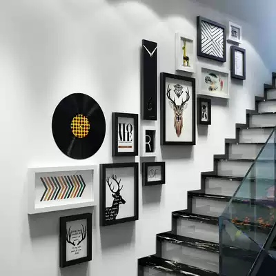 Photo Wall non-perforated staircase decoration solid wood photo frame hanging wall combination creative American Wall photo album Wall photo wall photo wall