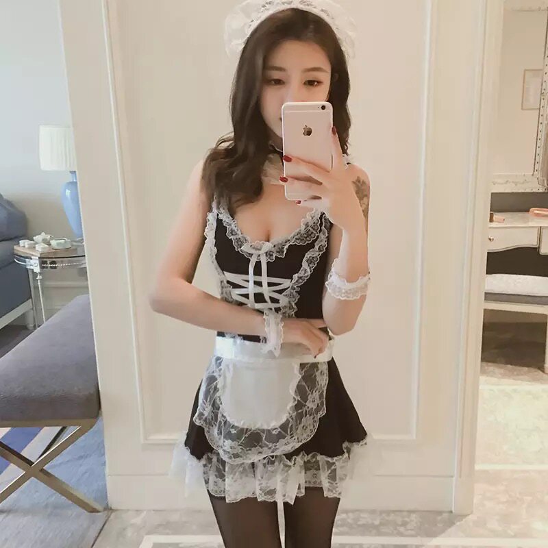 Erotic lingerie tease seduction sexy maid set sau pajamas bed passion hot free take-off costume
