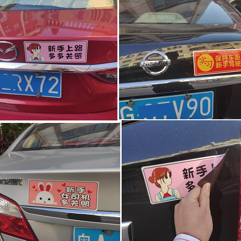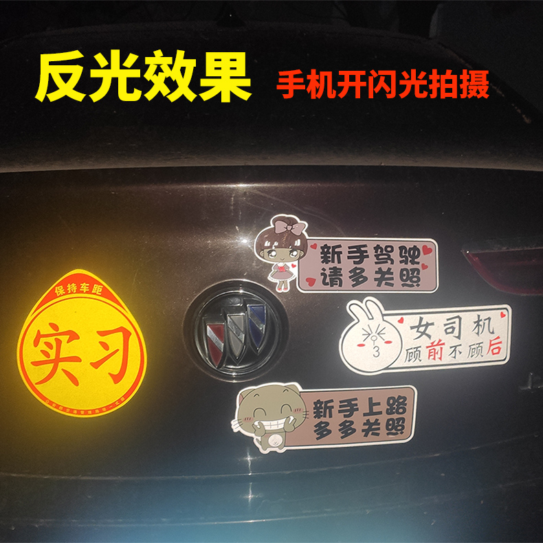 Magnetic sticker waterproof creative female personality words funny reflective internship Keep the car from magnetic attraction No glue