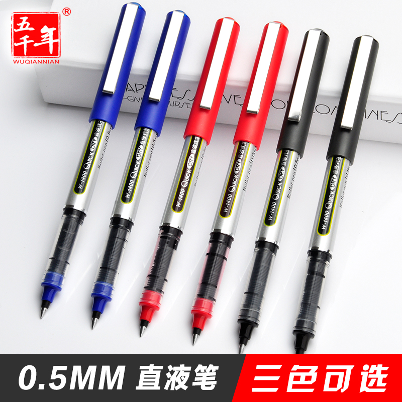 Five thousand years straight liquid pen water-based ballpoint pen signature straight liquid quick-drying pen business stationery gel pen black 0 5mm red pen office supplies students with gel pen bullet blue water-based pen
