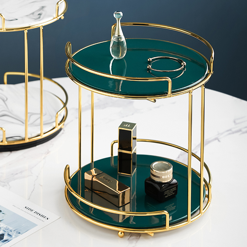 LIVETAI light luxury rotatable dark green gold makeup skin care storage finishing desktop dressing table multi-layer storage rack