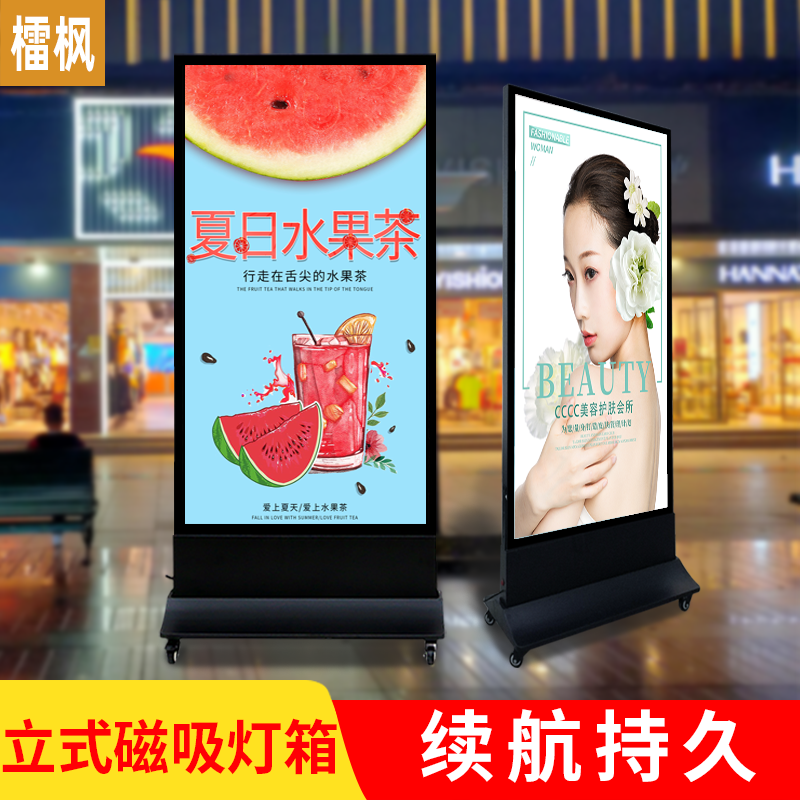Vertical magnetic light box LED outdoor waterproof floor mobile charging double-sided light emitting billboard signboard display board