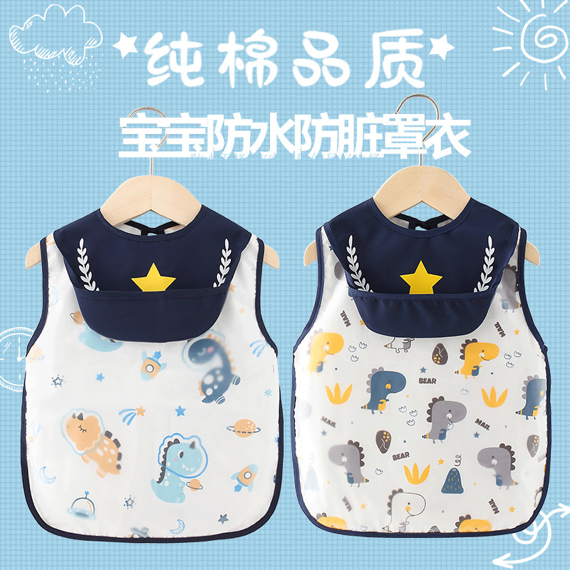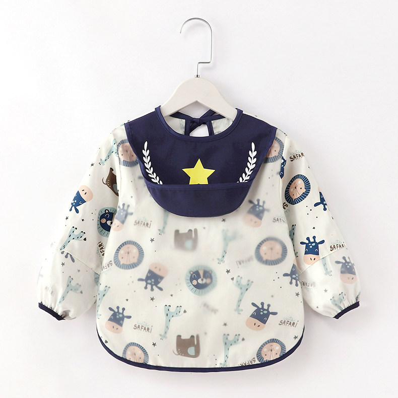 Children's bib waterproof and anti-dirty cotton meal bib female baby meal bib spring and autumn long-sleeved boy baby reverse dressing