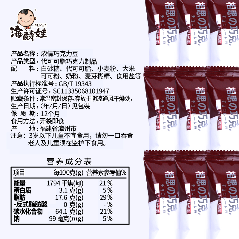 Hailinwa Mai Li vegetarian chocolate beans nostalgic classic sandwich snack candy snack snack (substitute cocoa butter)