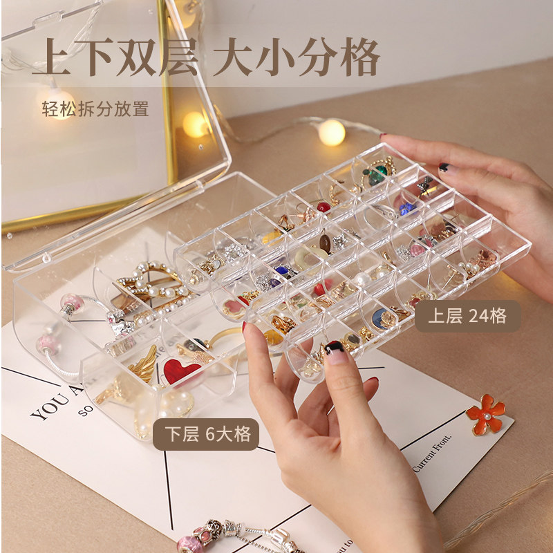 (Transparent color 30-compartment double-layer storage box (24 small compartments + 6 large compartments) - storage jewelry) SF2535