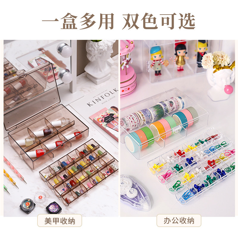 Nail art storage box can be stored on both sides Transparent scrub partition detachable