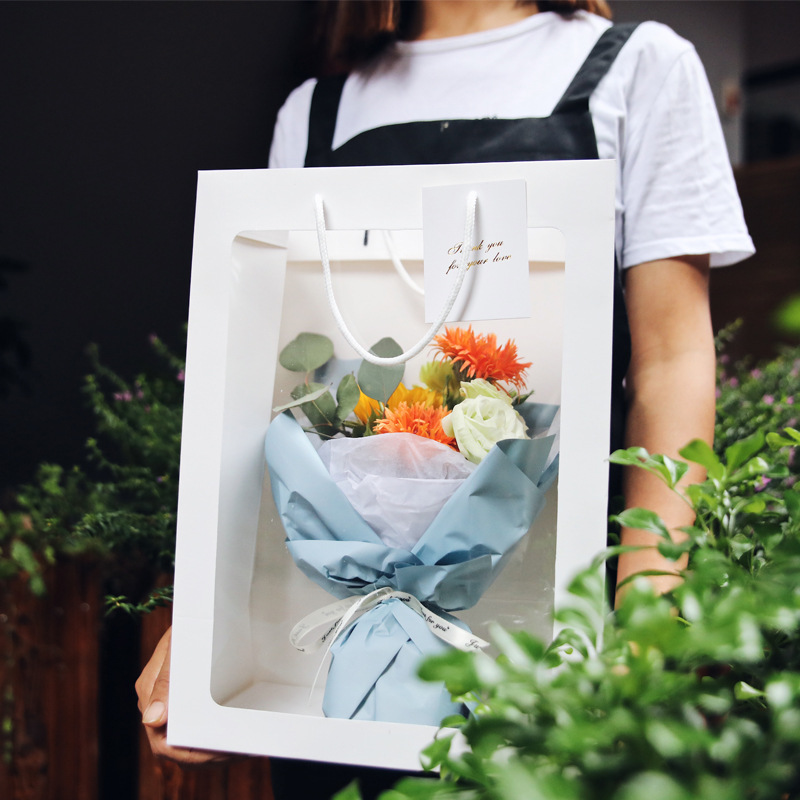 Valentine's Day flowers transparent tote bag pvc creative window open window gift bag Bouquet packing box Souvenir