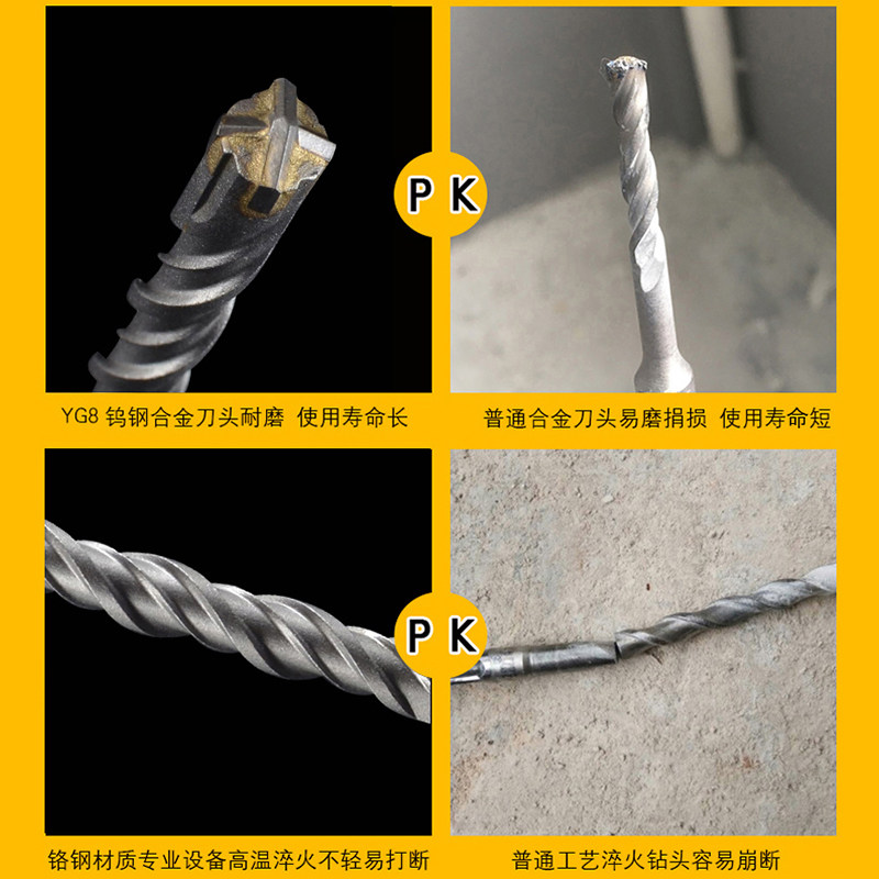 Standing Cheong Electric Hammer Drill Impact Drill Bit Cross Round Handle 6mm8mm Concrete Wearing Wall Punching 14mm lengthened four-edged drill