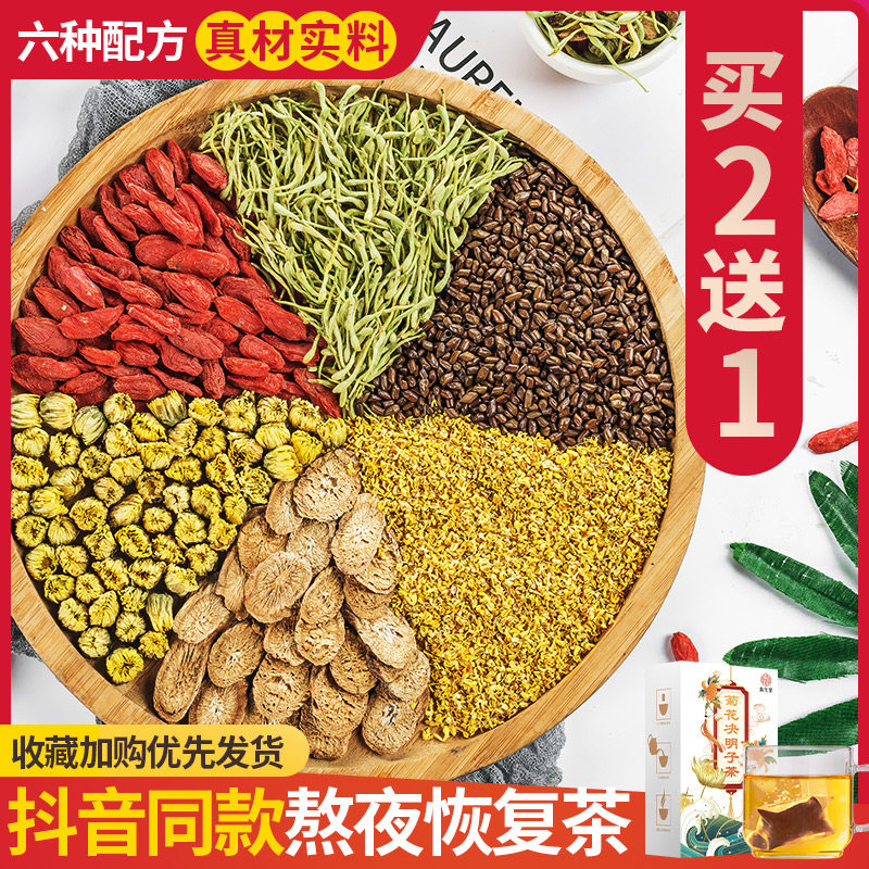 Cassia seed, burdock root, osmanthus, wolfberry, chrysanthemum, honeysuckle