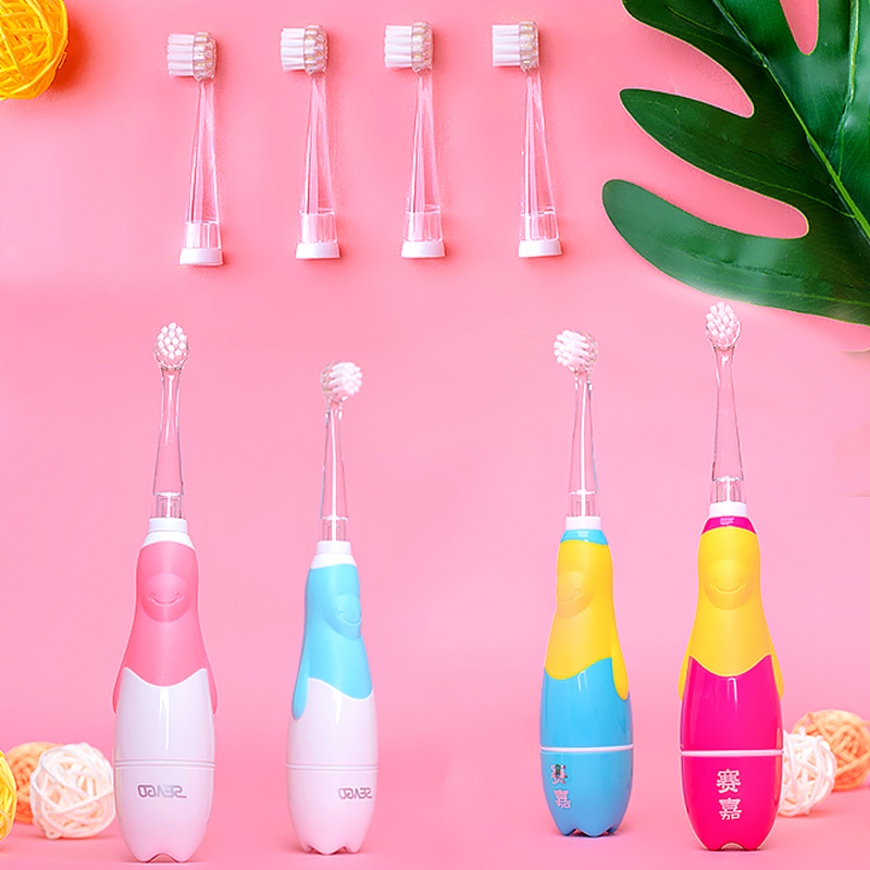 Red 4 Brushed batteries (6 months -5 years old) Blue 4 Brushed batteries (6 months -5 years) pink 1 large 1 small brush head (6 months -8 years old) Light blue 1 large 1