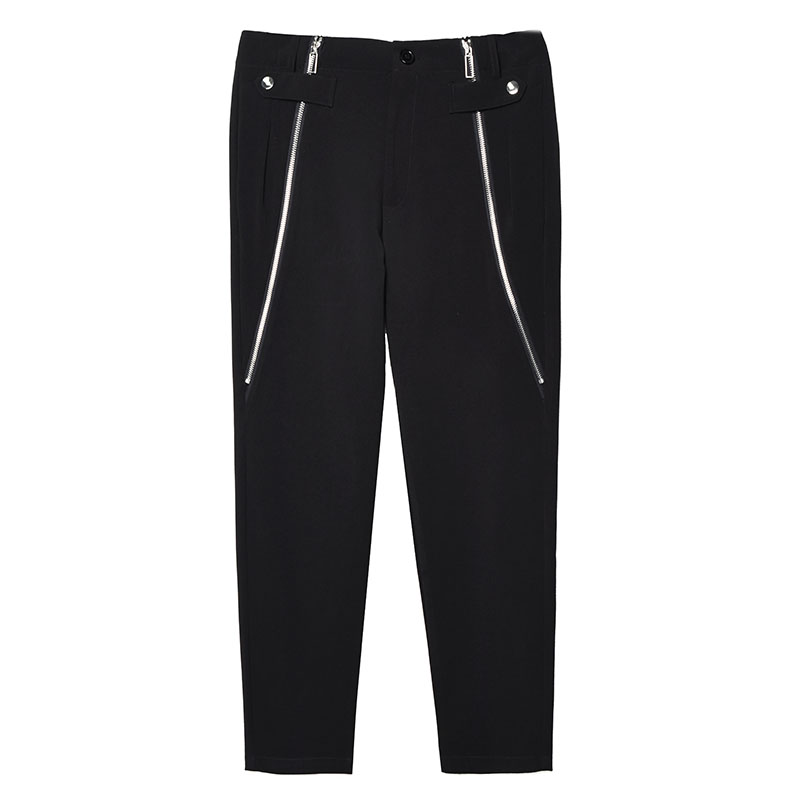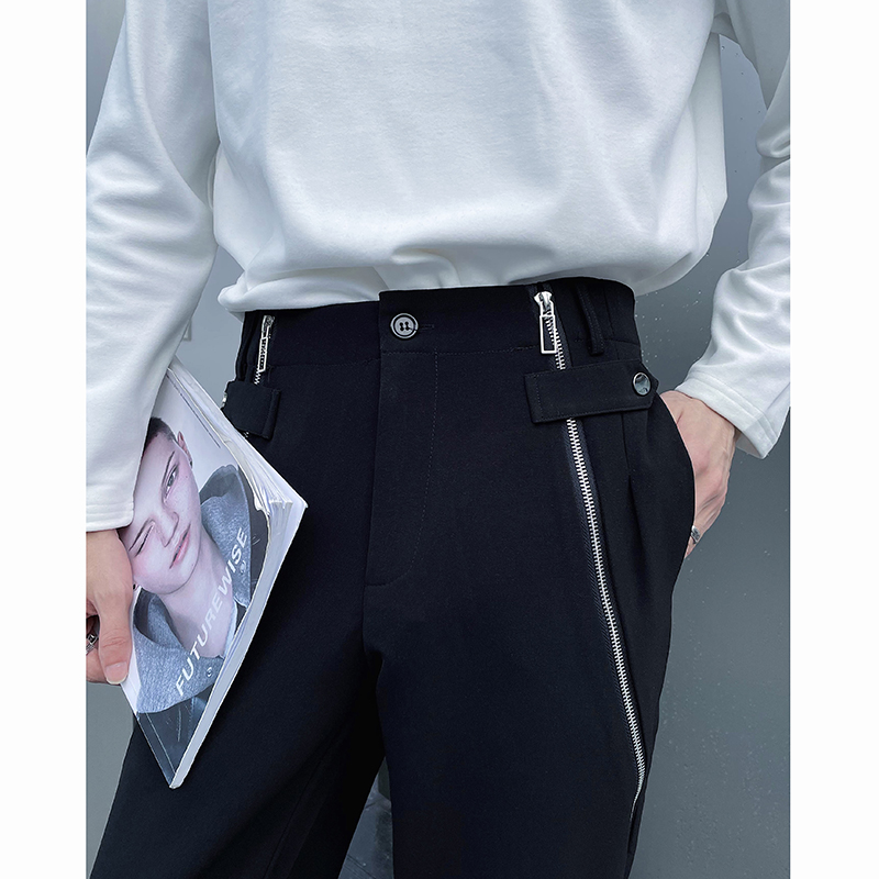 (Love to wear) zipper design feeling small group pants men slim small feet anti-wrinkle drop fashion pants advanced