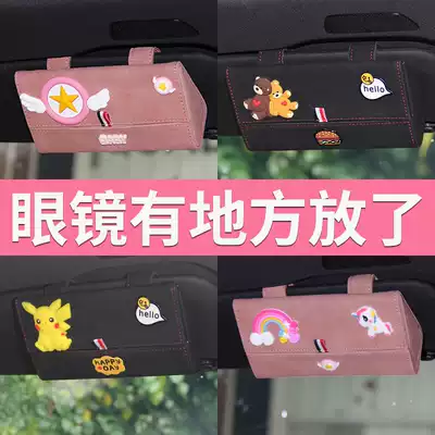 Car glasses case car clip frame multifunctional pink creative car interior supplies Daquan cute cartoon Lady