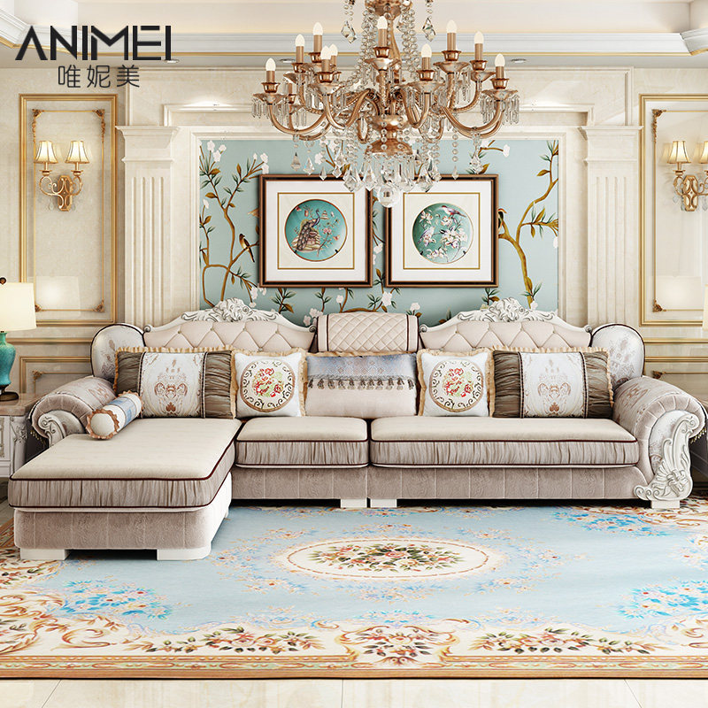 European fabric sofa combination imperial concubine small family living room furniture combination set corner L-shaped solid wood sofa