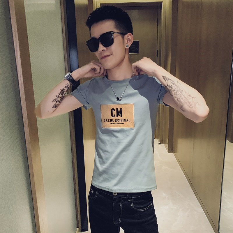 Social spiritual young man-sleeved man-tide Han Edition Repair t summer thin summer trend, half-sleeve T-shirt