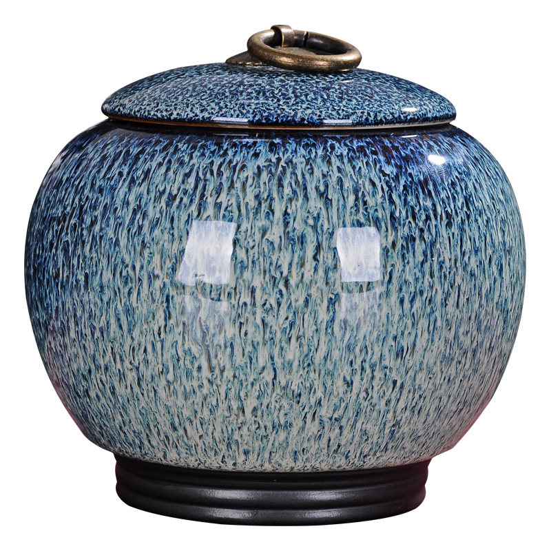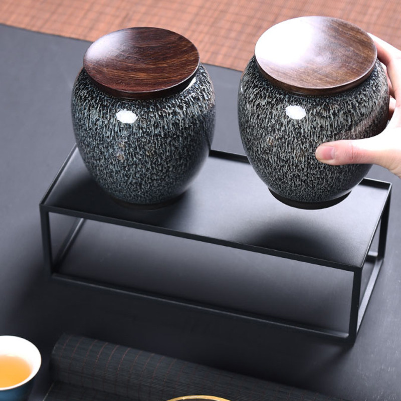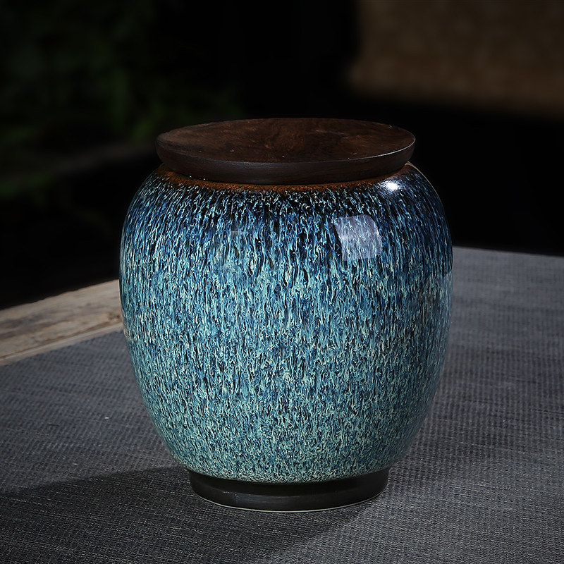 Cloth cover Blue kiln-changed tea canister cloth cover Brown kiln-made tea canister wooden lid Blue kiln-made tea canister wooden lid Red kiln-changed tea canister wooden lid Black kiln-changed tea canister wooden lid Yellow kiln-made tea canister