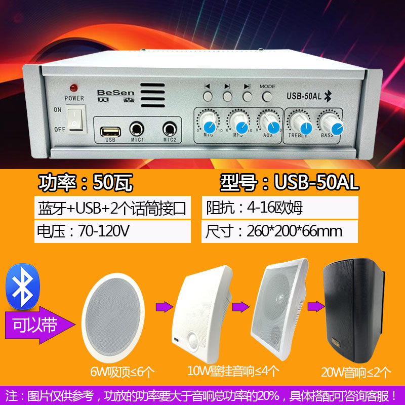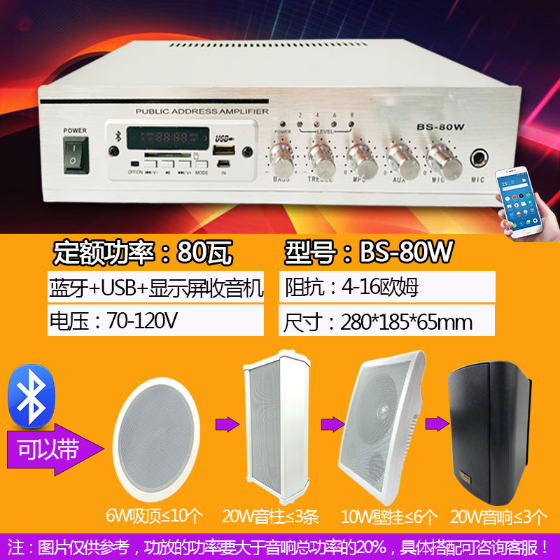 Bluetooth small power amplifier with USB ceiling speaker constant pressure fixed resistance ceiling audio home shop speaker power amplifier