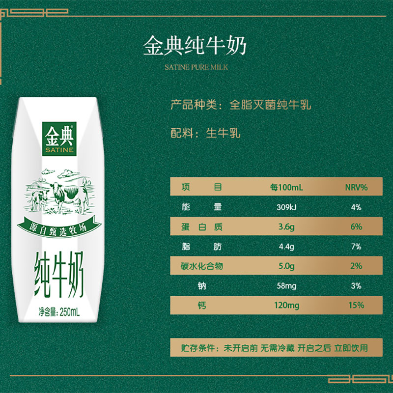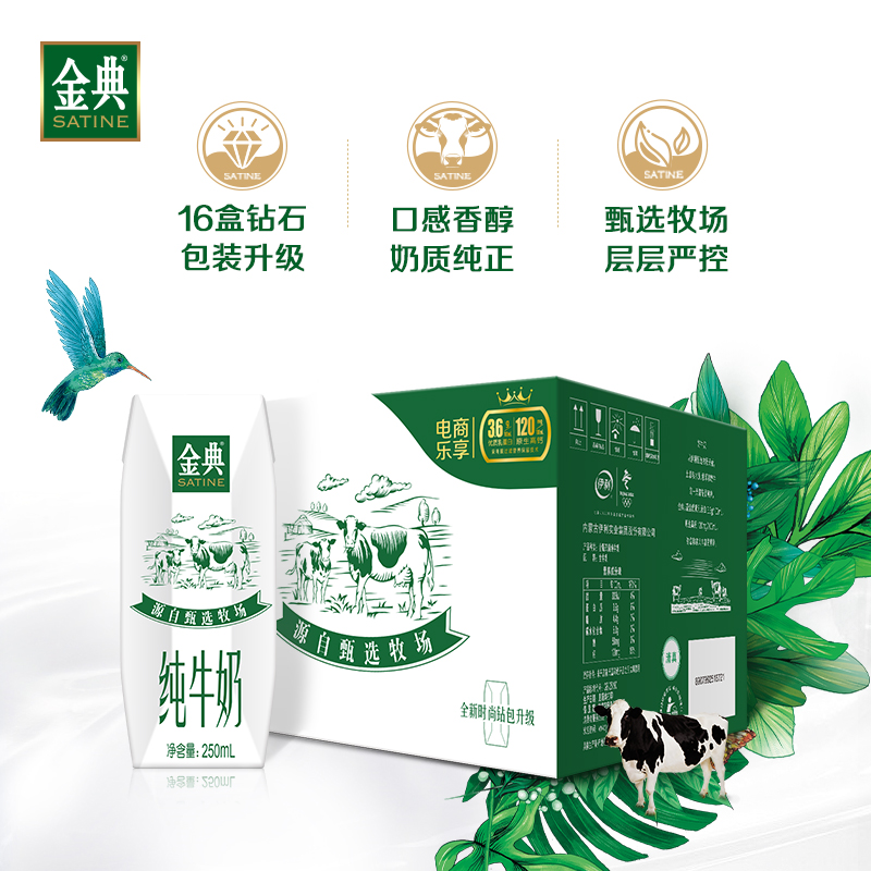 Jin Dian pure milk 250ml * 16 boxes FCL