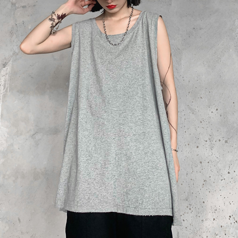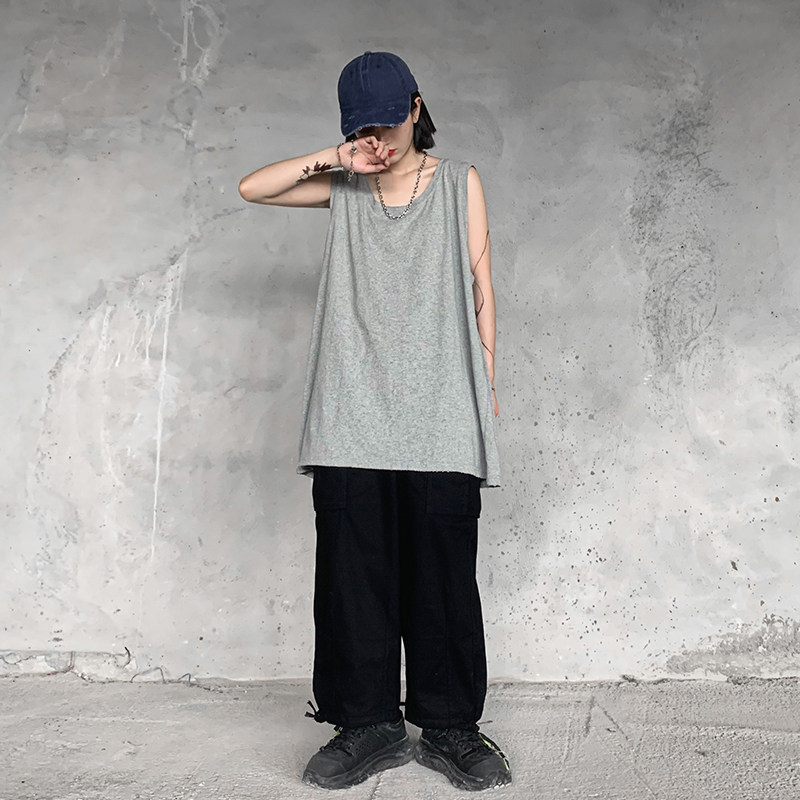 Spring and summer folding wear Korean bf Harajuku style solid color interior base shirt vest loose sleeveless T-shirt shirt top female ins tide