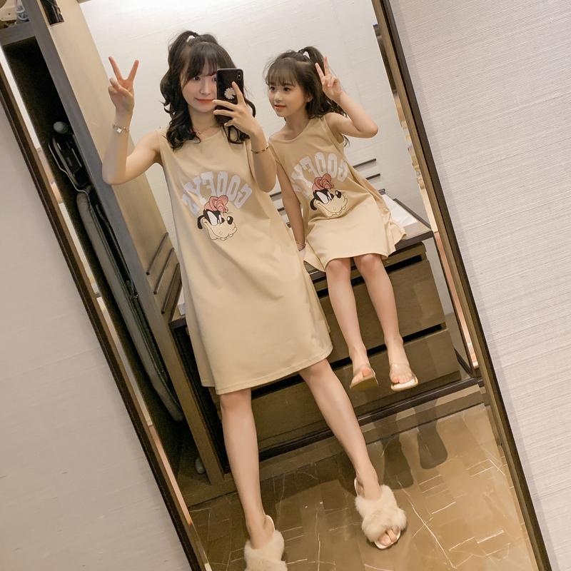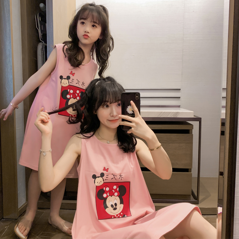 Mother Daughter Sleeping Dress Girl Summer Pure Cotton Short Sleeve Vest Cute Daisy Little Girl Children Pyjamas Children's Home Clothes