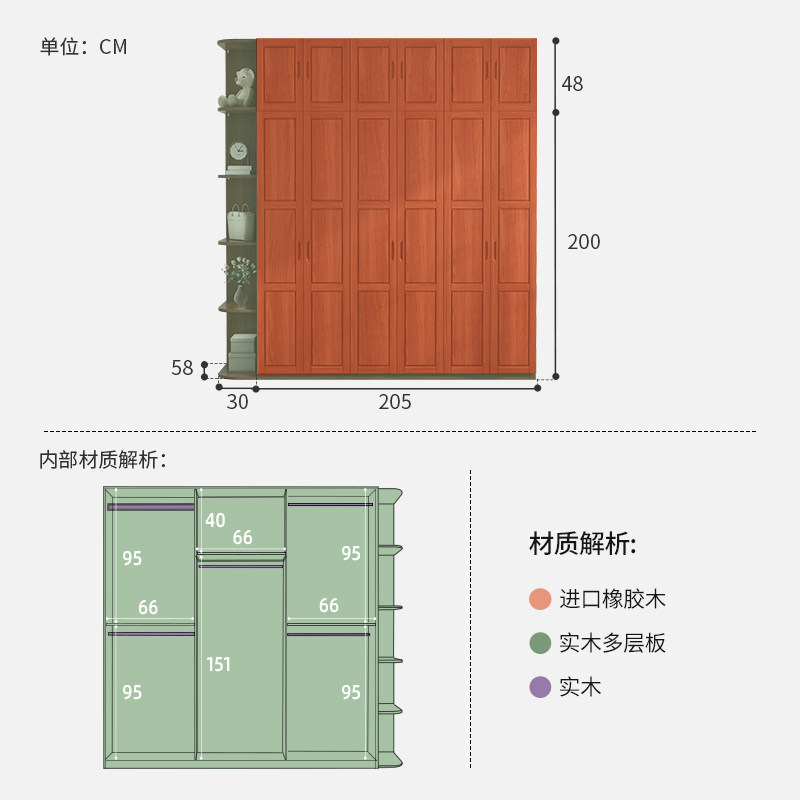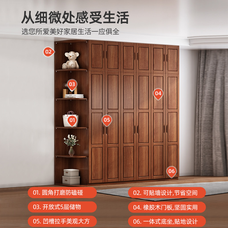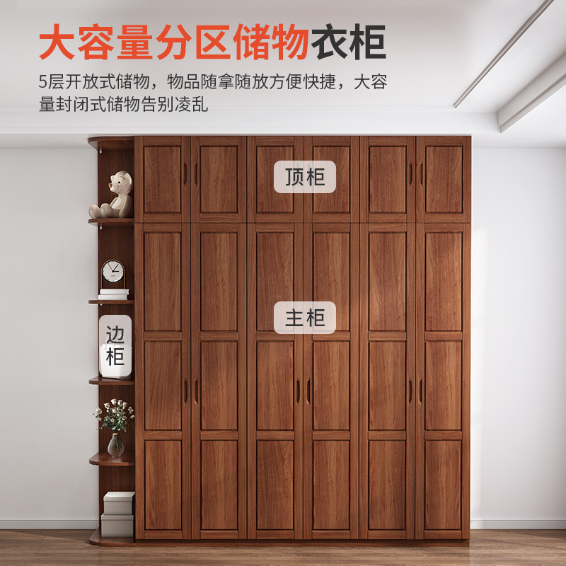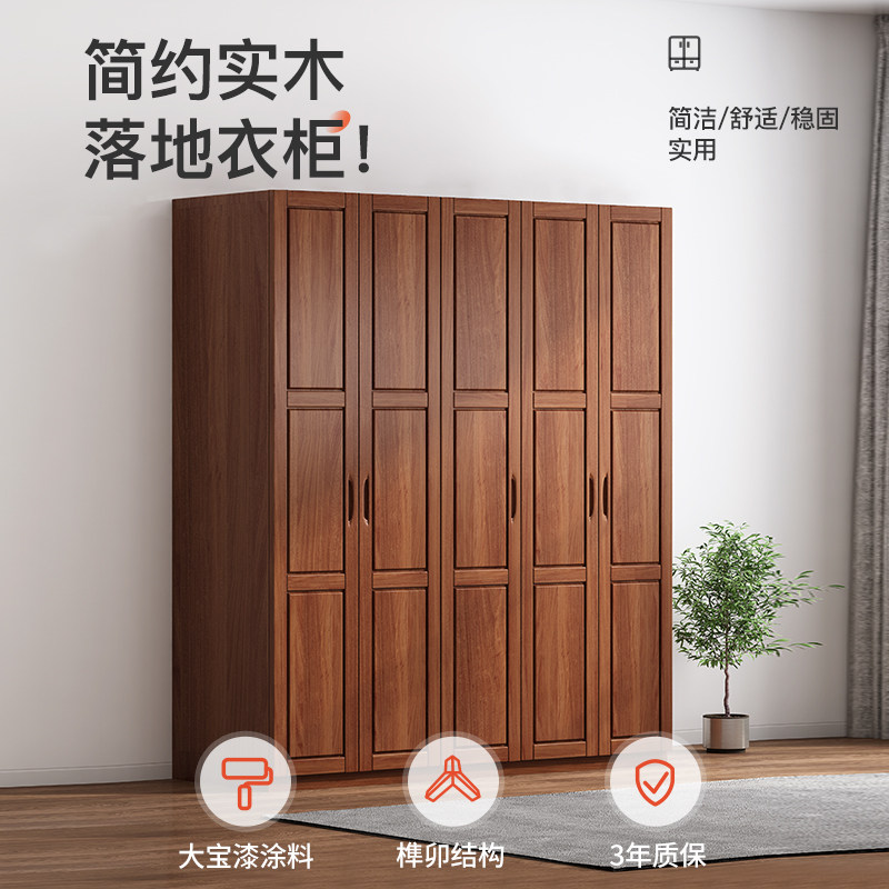 Male bear furniture modern minimalist Chinese solid wood wardrobe home bedroom clothes overall cabinet economical large wardrobe storage cabinet