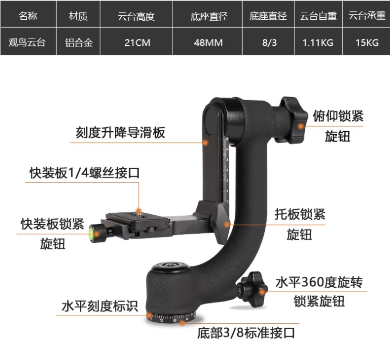 Kaley Panorama Cantilevered Tripod Head Hydraulic Damping View Bird Holder for bird holder Tripod Head Camera Slide Rail Accessories Stabilizers Videotaping single eye Changgio far away Cannon Lens Camera Tripod Tripod Head