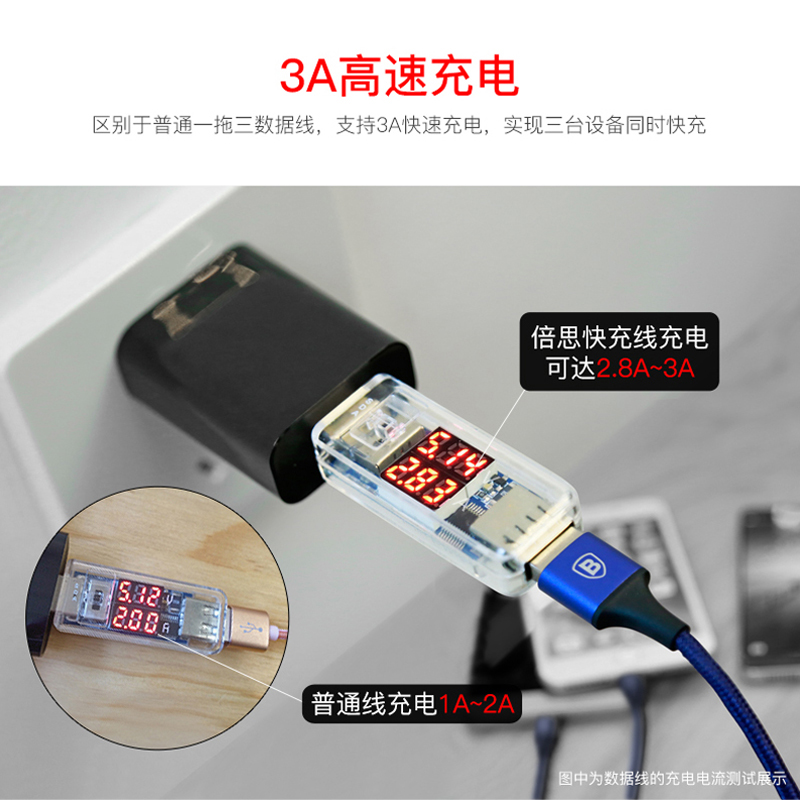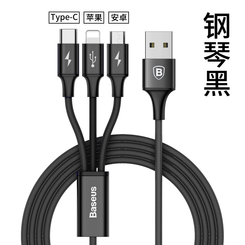 Baseus three-in-one data cable 1 tow 3 multi-function mobile phone charger cable is suitable for Apple Android type-c two-in-one universal Huawei Xiaomi iphone xsmax car fast charging
