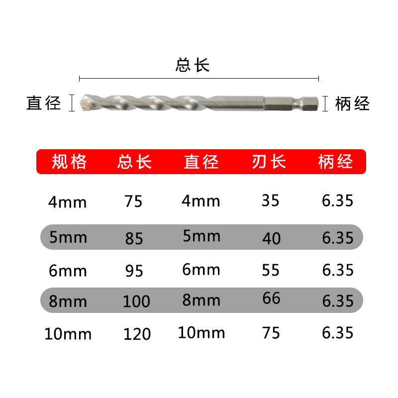 Hexagon Shank Cement Drilling Impact Drill Straight Shank Construction Drilling Drill Electric Drill Ceramic Mixed Clay Soil Wall Cement Drilling