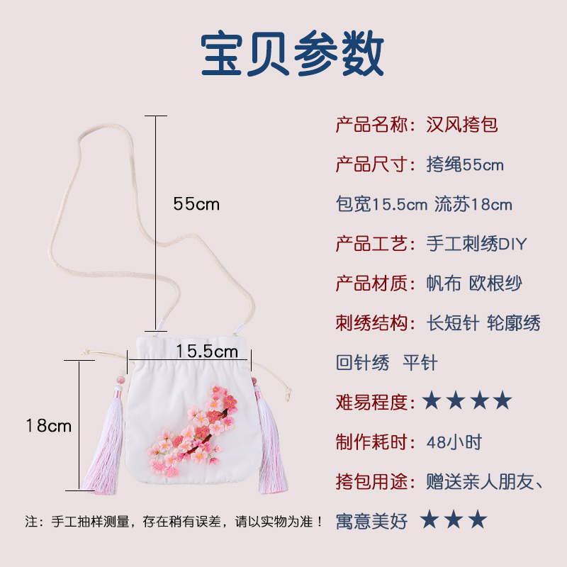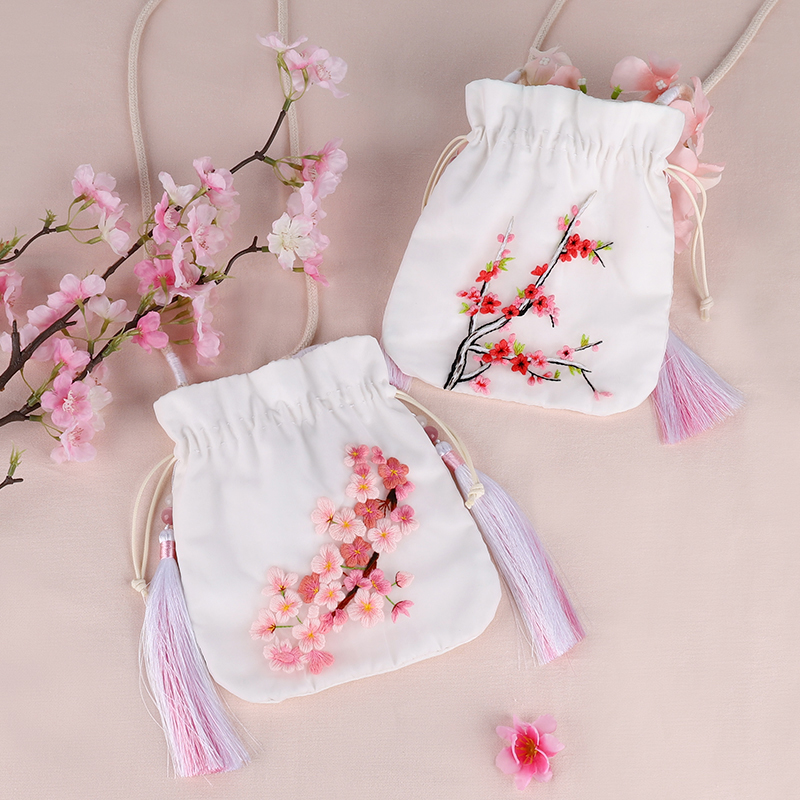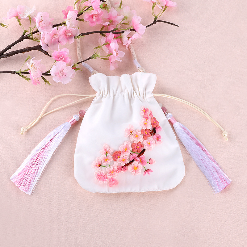 White Rose Hanfeng Satchel (Material Bag Embroidered Tassel Rope) Cherry Blossom Hanfeng Satchel (Material Bag Embroidered Tassel Rope) Peach Blossom Hanfeng Satchel (Material Bag Embroidered Tassel Rope) Qingluan