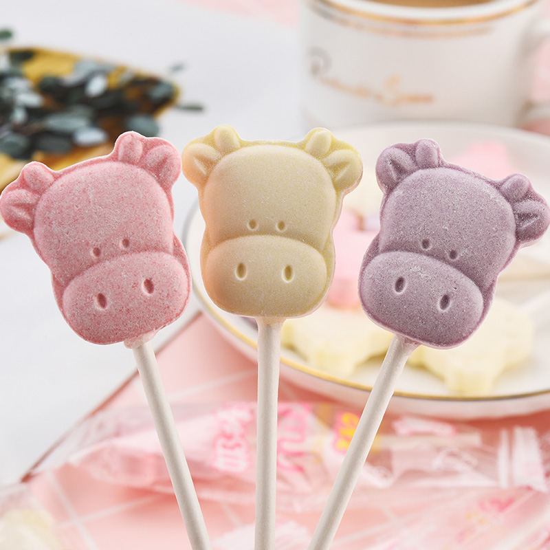 Cow head milk slices lollipop mixed taste cute cartoon baby candy net red children's snacks wholesale bulk