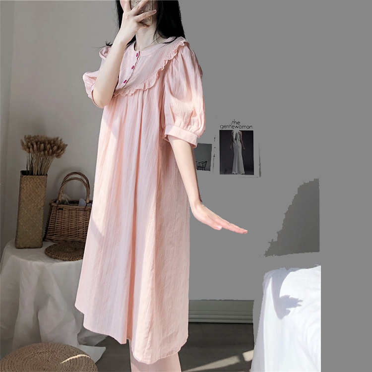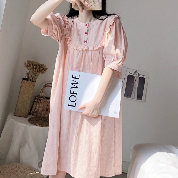 Summer Korean version pure cotton short sleeve sleeping dress lady cute princess ins girl student cotton linen gauze pyjamas home clothes