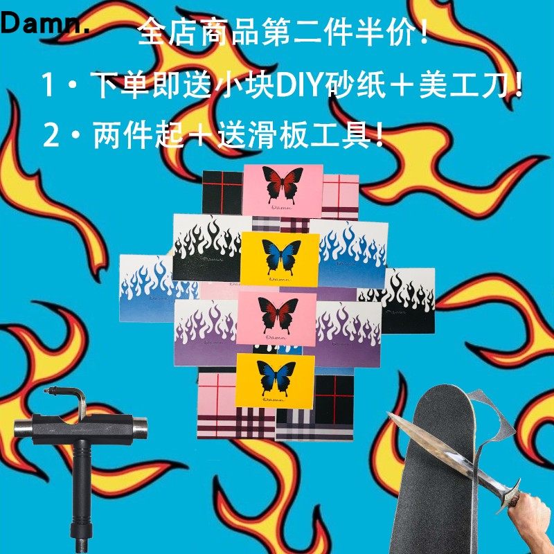 Ðamn DAMN Skateboard Sandpaper Rose Sand Paper Fire Shadow Black Rose Double Teething Board Stomata Sand