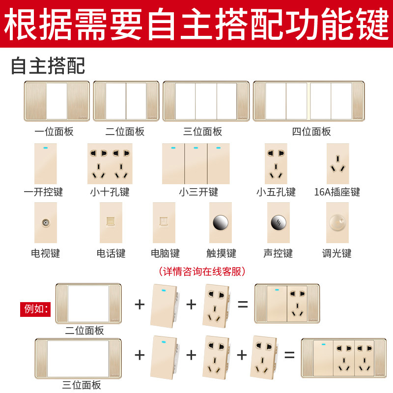 (Three-digit TV telephone computer) 118 switch socket Panel large box 3-digit TV telephone computer socket