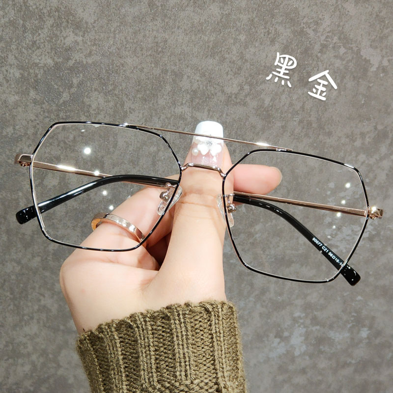 Double beam glasses frame myopia glasses female Korean version of tide pilot Net red plain big frame irregular glasses frame men