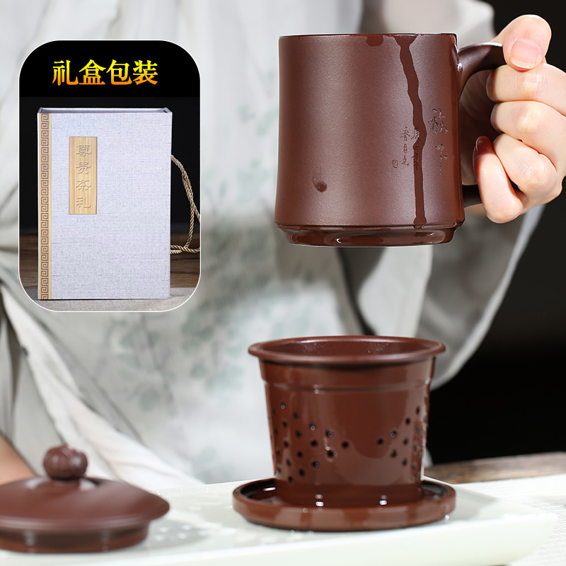 Authentic Yixing purple sand cup liner filter teacup pure handmade men's and women's large-capacity office running teacup