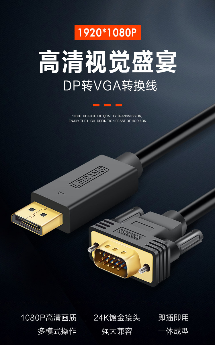 DP to VGA cable 1 5m cable dp to vga male-to-male computer display card large DP to monitor Leibang