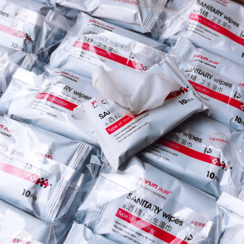 Permanent moisturizing with 75 degrees Alcohol disinfection wet towels Small package Carry-on sheet Hygienic Germicidal Portable 10 Sheet Packaging