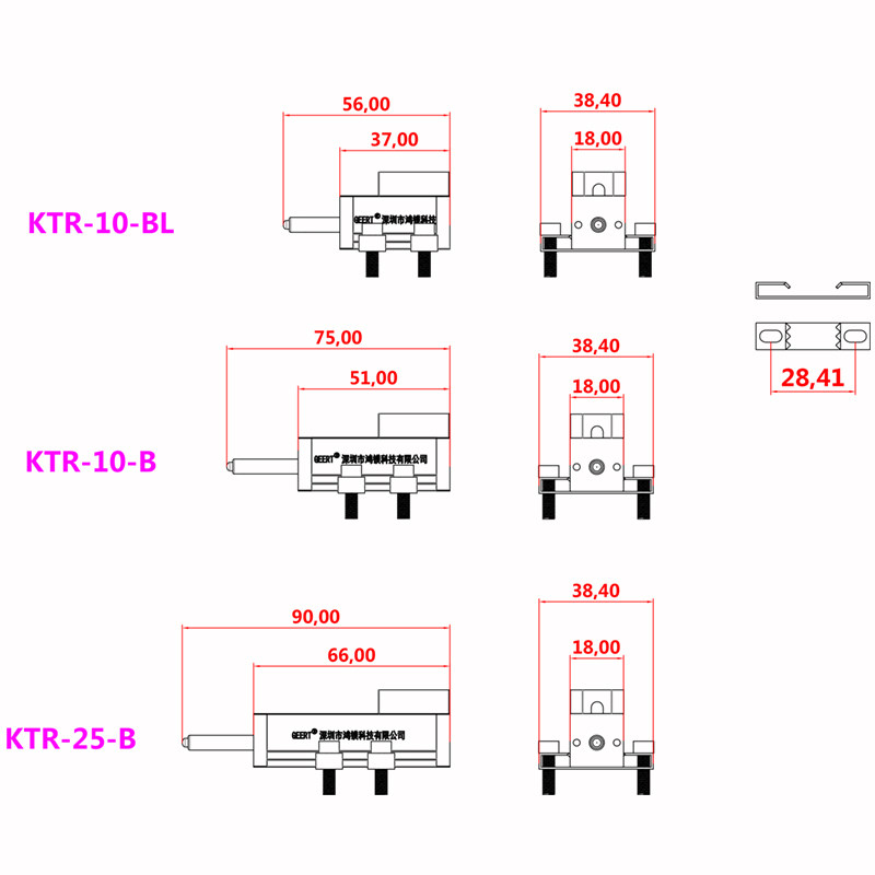 KTR-10mm-BL shortest KTR-10mm-B KTR-15mm-B KTR-25mm-B