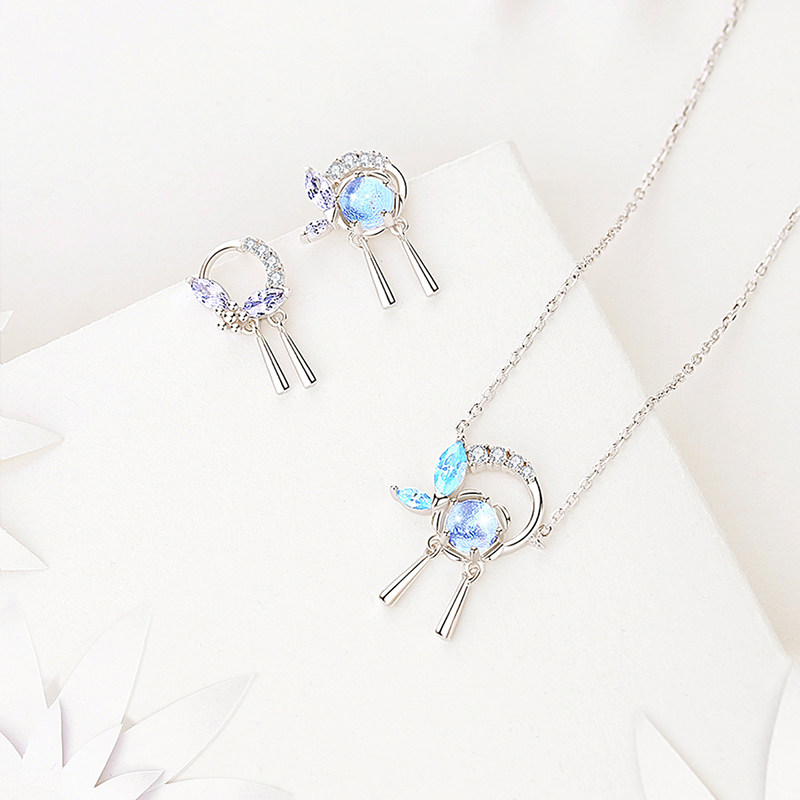 One Flowers One Leaf Pure Silver Ear Nail Ear Accessories Necklace Woman Lock Bones Chain National Wind Gufeng Minimalist Temperament Han Wear Accessories Gift